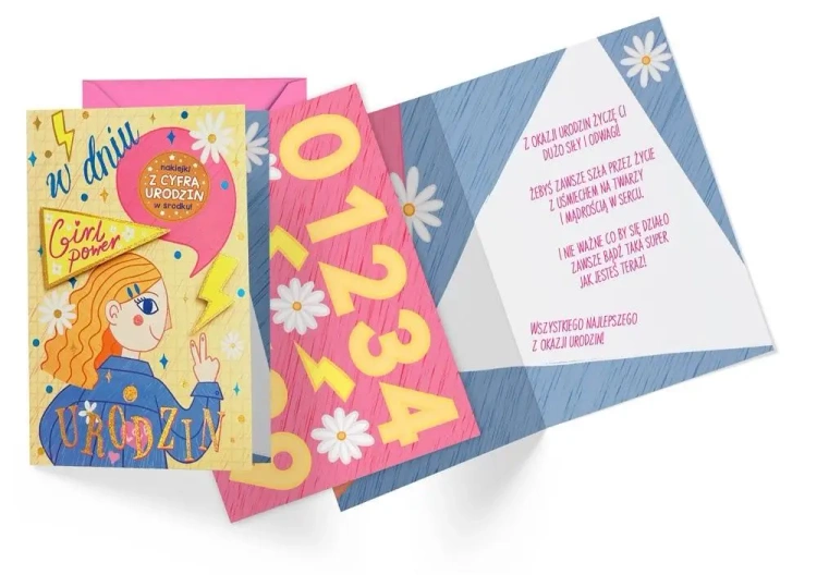 Produkty z tej serii to idealna kombinacja atrakcyjnej ceny i wysokiej jakości. Kartki są wyposażone w specjalny dodatek - naklejki z cyferkami, które pozwalają na stworzenie dowolnego wieku jubilata.