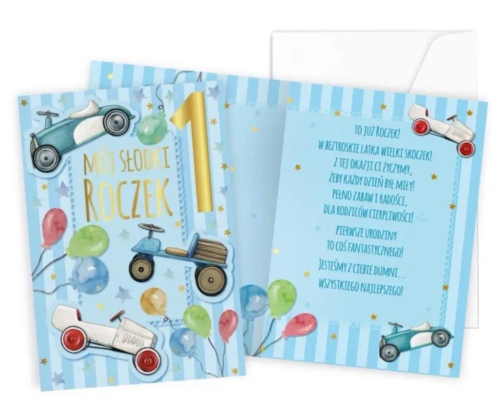 Ta wyjątkowa kartka jest idealnym wyborem na świętowanie pierwszych urodzin.