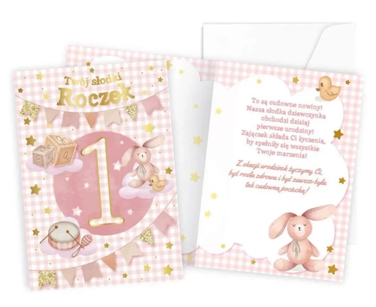 Ten karnet to idealny wybór na uczczenie pierwszych urodzin, z eleganckimi detalami, które dodadzą blasku każdej uroczystości.