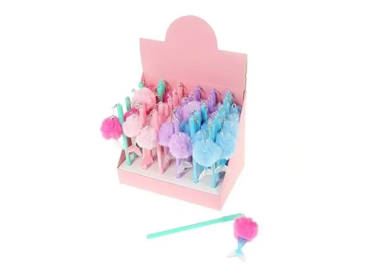 Długopis ozdobny "Rybi ogon" z pluszową kulą - Zestaw 30 sztuk