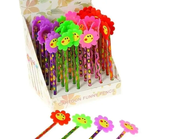 Urokliwy ołówek z silikonowym kwiatkiem - zestaw 36 sztuk