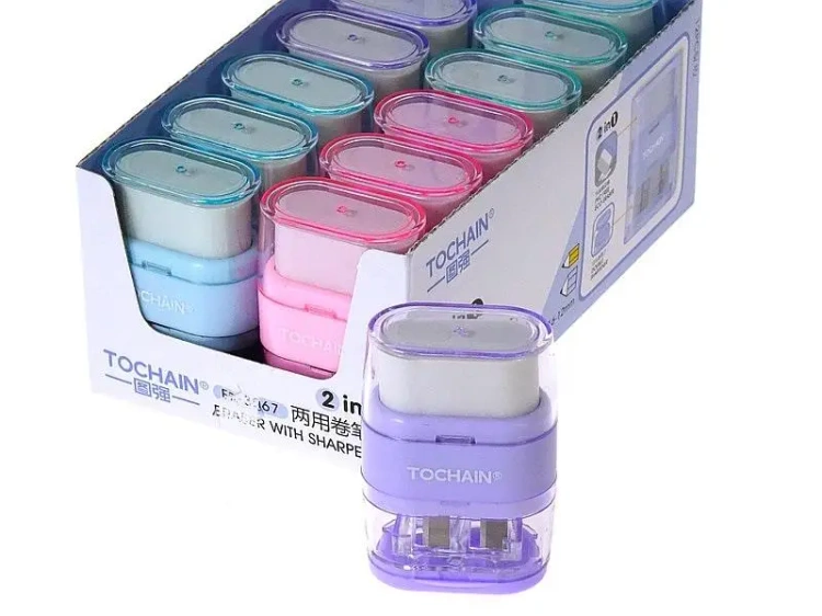 Odkryj praktyczność i funkcjonalność, jaką oferuje ta podwójna temperówka wyposażona w gumkę. Dzięki swojemu kompaktowemu wymiarowi 6x4x2,5 cm, z łatwością zmieści się w każdej przyborniku.