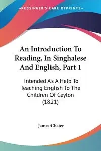 ""An Introduction To Reading, In Singhalese And English, Part 1"" is a book written by James Chater in 1821. The book is intended to help teach English to the children of Ceylon (now Sri Lanka) by providing an introduction to reading in both Singhalese and English. The book is divided into two parts, with Part 1 focusing on basic reading skills and vocabulary in both languages. The book includes a variety of exercises and examples to help children learn to read and understand English. Chater's book is an important historical document that sheds light on the efforts to promote English education in colonial Ceylon during the early 19th century.This scarce antiquarian book is a facsimile reprint of the old original and may contain some imperfections such as library marks and notations. Because we believe this work is culturally important, we have made it available as part of our commitment for protecting, preserving, and promoting the world's literature in affordable, high quality, modern editions, that are true to their original work.