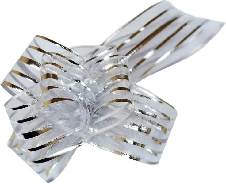 Elegancka srebrna kokarda sprawdzi się w dekoracji prezentów oraz w aranżacjach wnętrz. Jej uniwersalny wygląd i kształt dodadzą uroku każdemu przedmiotowi, który ozdobi.