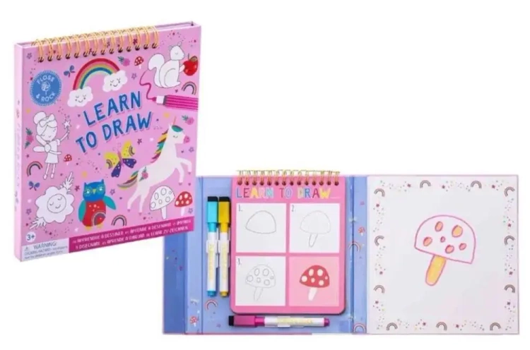 Wspaniały zestaw do nauki rysowania dla dzieci w prosty i zabawny sposób zachęci dziecko do rozpoczęcia przygody z nauką rysowania. Zestaw zawiera 8 grubych, błyszczących stron, 3 kolorowe suchościeralne pisaki z gumkami oraz sekcję do rysowania i kolorowania. Sposób narysowania każdej ilustracji przedstawiony jest w trzech prostych krokach, dzięki czemu nauka rysowania będzie dla każdego malucha łatwa i przyjemna. Zmazywalne strony pozwalają trenować bez końca. Zestaw składa się na płasko, posiada praktyczne magnetyczne zamknięcie i idealnie sprawdzi się w podróży. Zapraszamy do zabawy! Cechy: