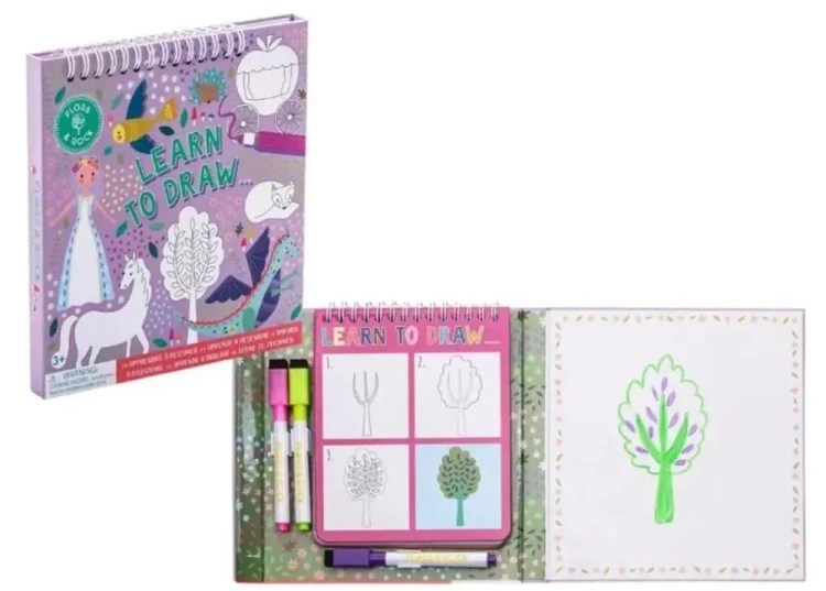 Wspaniały zestaw do nauki rysowania dla dzieci w prosty i zabawny sposób zachęci dziecko do rozpoczęcia przygody z nauką rysowania. Zestaw zawiera 8 grubych, błyszczących stron, 3 kolorowe suchościeralne pisaki z gumkami oraz sekcję do rysowania i kolorowania. Sposób narysowania każdej ilustracji przedstawiony jest w trzech prostych krokach, dzięki czemu nauka rysowania będzie dla każdego malucha łatwa i przyjemna. Zmazywalne strony pozwalają trenować bez końca. Zestaw składa się na płasko, posiada praktyczne magnetyczne zamknięcie i idealnie sprawdzi się w podróży. Zapraszamy do zabawy! Cechy: