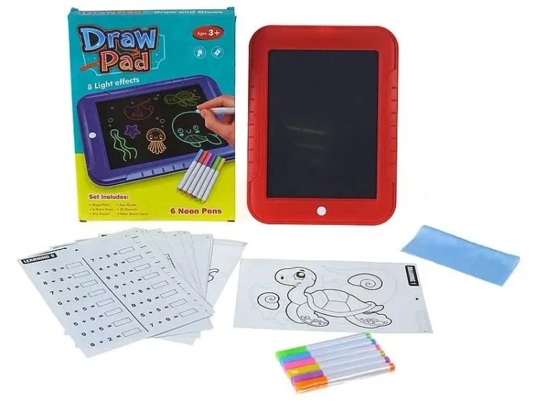 Przedstawiamy niezwykłą magiczną tablicę, która świeci w ciemności, dostarczając niesamowitych doznań podczas rysowania i pisania. Zestaw zawiera aż 30 szablonów oraz 6 neonowych flamastrów, dzięki którym każda praca zyska wyjątkowy blask. Tablica ma wymiary 26x20x2,5 cm i jest zapakowana w eleganckie pudełko.