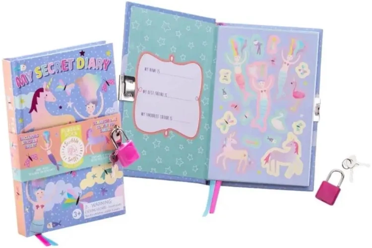 W środku znajdziesz także dwie kolorowe tasiemki do zaznaczania stron oraz zabawny zestaw naklejek z syrenkami, jednorożcami i innymi fantastycznymi postaciami. To doskonały prezent dla każdego, kto chce rozwijać swoją kreatywność i wyrazić siebie w pisemnej formie.