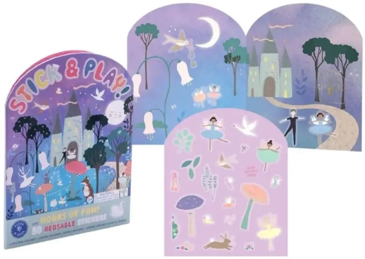 Zestaw Naklejek Wielokrotnego Użytku z planszami to świetna zabawa i nauka jednocześnie. W skład zestawu wchodzi ponad 50 zabawnych naklejek, w tym baletnice, tancerzy, magiczne zwierzaki, uśmiechnięty księżyc i wiele innych, oraz 2 rozkładane plansze ilustrujące zaczarowany świat jeziora łabędzi do tworzenia i wymyślania historii za pomocą naklejek. Naklejki można łatwo umieszczać, nakładać na siebie i zmieniać ich położenie. Dodatkową atrakcją jest dopasowywanie naklejek do ich kształtów na kartach do przechowywania, co zapewni maluchom rozrywkę na długie godziny! Zestaw daje dzieciom nieograniczone możliwości wyrażania swojej kreatywności, ćwiczy koncentrację i wyobraźnię, a także rozwija małą motorykę. Zapakowany jest w twardą okładkę, składa się całkowicie na płasko, dzięki czemu idealnie sprawdzi się w podróży. Cechy: