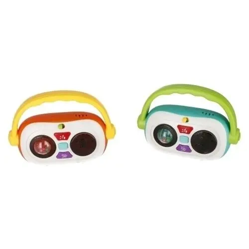 Interaktywna zabawka muzyczna ZABAWNE RADYJKO BAM BAM przeniesie Twoje dziecko w świat wspaniałych doznań dźwiękowych, oferując różnorodne melodie, brzmienia i piosenki. Każde naciśnięcie przycisków wywołuje nie tylko dźwięki, ale również migotanie kolorowych światełek, które synchronizują się z linią melodyczną, co dodatkowo uatrakcyjnia zabawę.