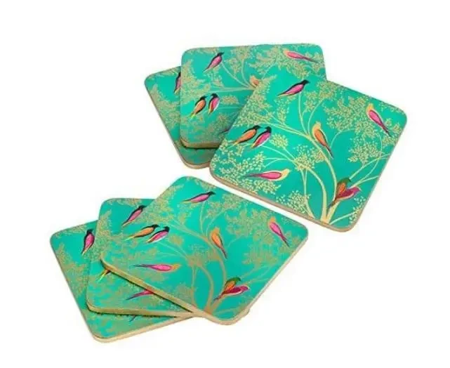 Przenieś magię zaczarowanego ogrodu do swojego wnętrza dzięki zestawowi sześciu eleganckich podkładek. Zdobione pięknym wzorem, który przedstawia ptaki i złote liście z kolekcji Green Birds, te podkładki dodają wyjątkowego uroku każdemu stołowi.