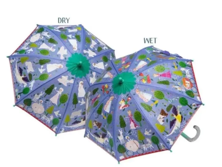 Pozwól swojemu dziecku przeżyć niecodzienne przygody dzięki tej magicznej parasolce, która zmienia kolory podczas opadów! Kiedy tylko deszcz zaczyna padać, białe wzory na parasolce ożywają kolorowymi ilustracjami z bajkowego świata, wprowadzając radość w każdy ponury dzień. W miarę jak parasolka schnie, kolory ponownie stają się białe, co daje niesamowity efekt wizualny. Produkt wyposażony jest w komfortowe zapięcie na rzep, zapewniające bezpieczne przechowywanie złożonej parasolki.