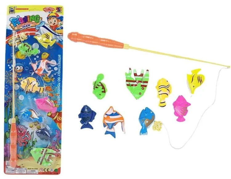W zestawie znajdziemy planszę imitującą staw z kolorowymi rybkami oraz wędki, którymi gracze próbują "łowić" pływające stworzenia. Gra rozwija zręczność, refleks i koordynację ruchową.