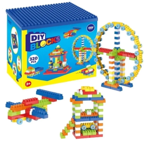 Zestaw Klocków Konstrukcyjnych Płytka w Pojemniku - 320 Elementów
