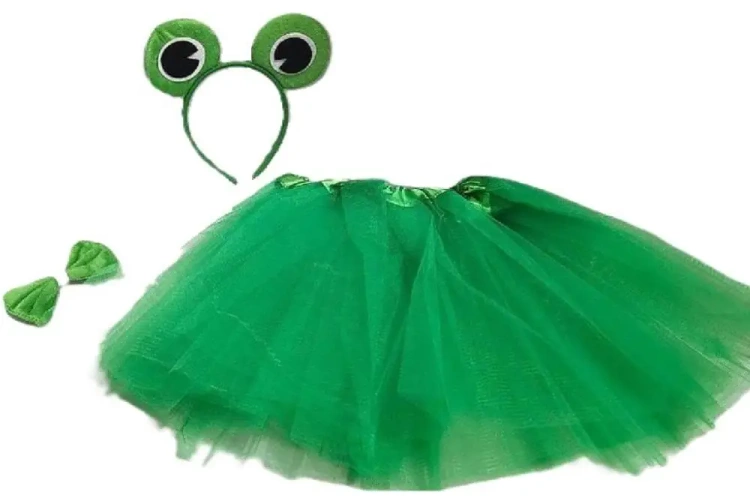 Przedstawiamy Zielony Strój Żabki, który składa się z trzech uroczych elementów: opaski z uszami, ogonka oraz spódniczki.