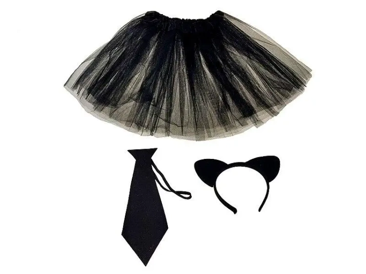 Ten uroczy zestaw obejmuje elegancką opaskę z uszami, dopasowany ogonek oraz stylową spódniczkę, tworząc idealny kostium czarnego kota.