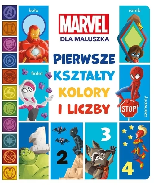 W tej pięknie zilustrowanej książeczce postaci z uniwersum Marvela zaprezentują liczby, kształty i kolory. Dzięki niej dzieci wzbogacą słownictwo, nauczą się łączyć słowa z ich znaczeniami i poćwiczą nazywanie rzeczy z najbliższego otoczenia.