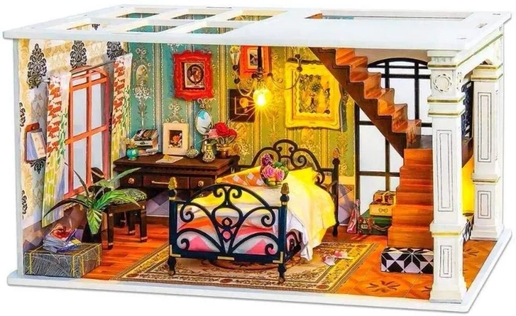 Składany Drewniany Model LED - Paryska Sypialnia - Robotime