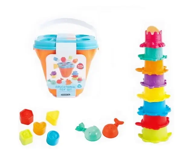 Wiaderko sorter, które ukrywa w sobie klocki o różnych kształtach i kolorach. Ta zabawka pobudza rozwój zmysłów u dzieci i ćwiczy ich zręczność. Z elementów można tworzyć piramidkę. Zestaw zawiera 16 elementów i jest przeznaczony dla dzieci od 18 miesiąca życia. Cena dotyczy jednej sztuki.EAN: 5902496192687