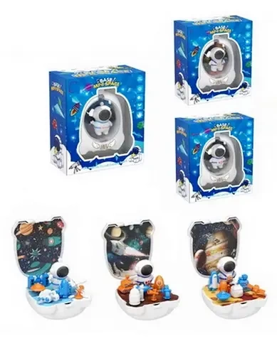 Zestaw dla chłopca, który chciałby zostać astronautą. W zestawie znajduję się astronauta, planeta, kilka kosmicznych figurek m.in.: koparka, rakieta, satelita. Produkt dla dzieci od 3 lat. Zabawka zapakowana w kartonowe opakowania z przezroczystym oknem. Produkt występuje w kilku wersjach kolorystycznych. Kolor wybierany losowo.