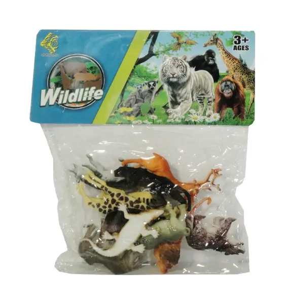 W zestawie znajduje się 12 różnych figurek, w tym: żyrafa, tygrys, słoń, wilk, krokodyl, pantera, lew, nosorożec, niedźwiedź, zebra, hipopotam oraz jeleń.