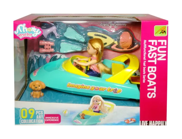 Lalka z zestawem stworzonym do wodnych zabaw to idealny sposób na pobudzanie kreatywności i wyobraźni u najmłodszych. W komplecie znajdziesz motorówkę, uroczego pieska, maskę do nurkowania, lornetkę, płetwy oraz megafon.