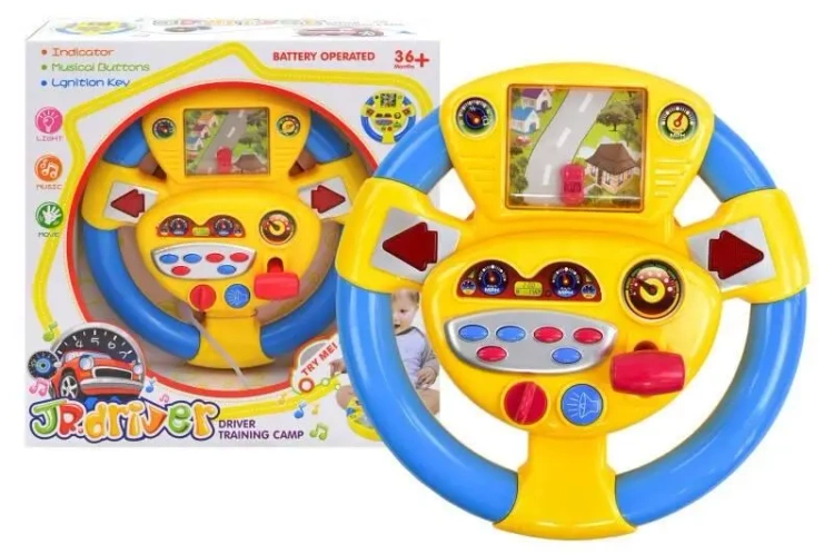 Kierownica Maksik jest wyposażona w realistyczne dźwięki silnika, klakson oraz symulację zmiany biegów, co sprawia, że dzieci mogą poczuć się jak prawdziwi kierowcy. Intuicyjne przyciski i solidna konstrukcja gwarantują długotrwałe użytkowanie, a atrakcyjny design przyciąga wzrok.