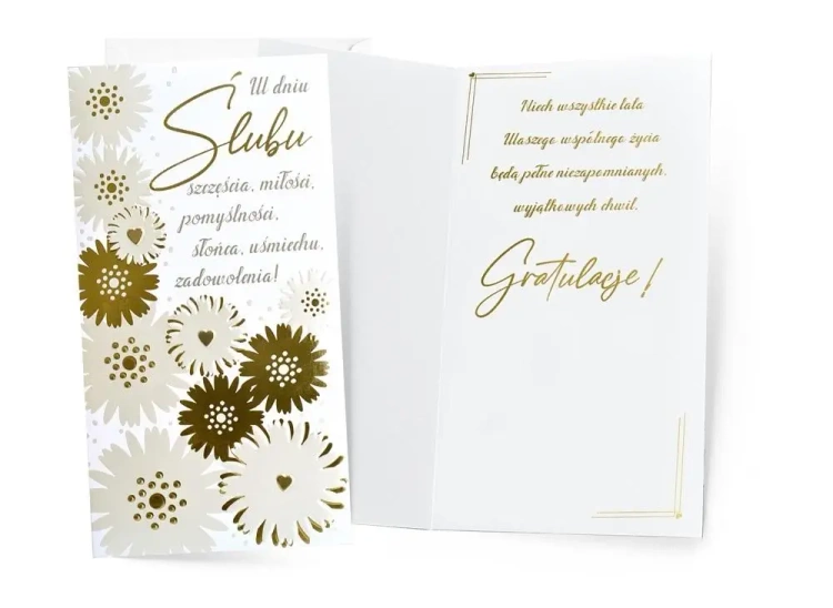 Wnętrze: Delikatna grafika z wyjątkowymi życzeniami w środku.