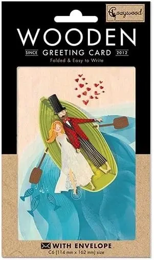 Karnet drewniany C6 + koperta Ślub Para w łódce - Cozywood