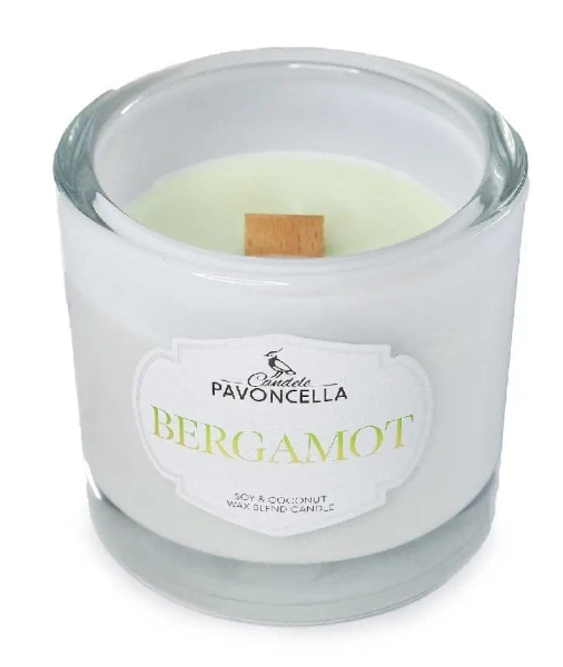 Świeczka sojowa Bergamot biała 170g - Pavoncella