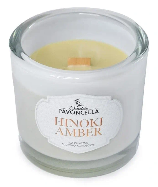 Świeczka sojowa Hinoki Amber biała 170g - Pavoncella