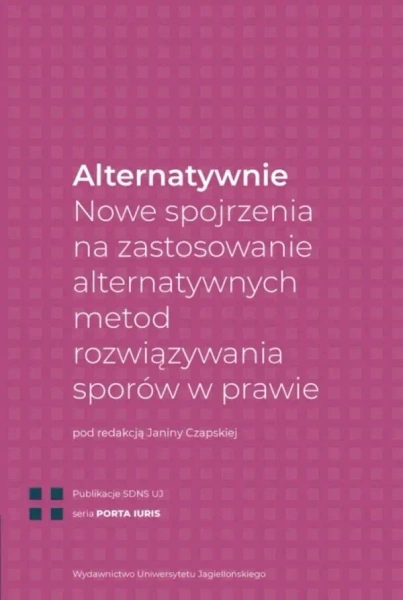 "Praca pod redakcją dr hab. Janiny Czapskiej, prof. UJ, zatytułowana Alternatywnie. Nowe spojrzenia na zastosowanie alternatywnych metod rozwiązywania sporów w prawie, stanowi oryginalną i wartościową treściowo oraz konstrukcyjnie monografię naukową, popartą rzetelną i szczegółową analizą indywidualną i grupową szerokiego spektrum właściwie dobranych i skomponowanych, relewantnych zagadnień badawczych".