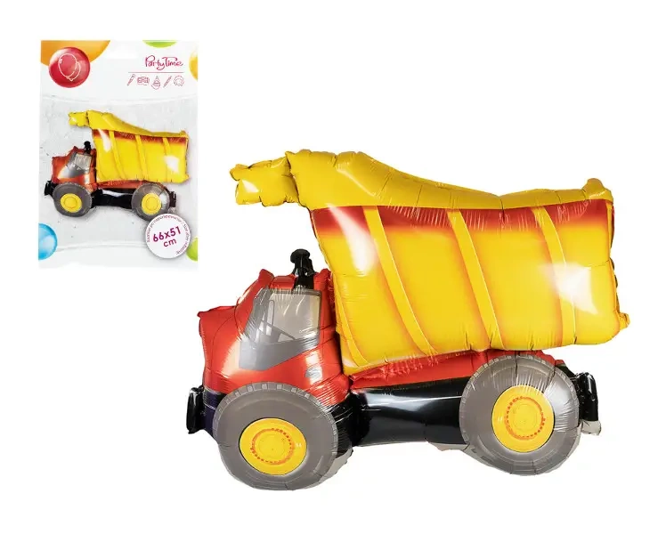 Balon foliowy w kształcie wywrotki. Idealnie wpasowuje się w tematykę przyjęć dziecięcych. Możliwość napełnienia powietrzem lub helem. Może pełnić funkcję elementu dekoracyjnego lub służyć do zabawy pod okiem dorosłego opiekuna. Balon posiada samozaciskający się wentyl - nie trzeba go dodatkowo wiązać. Wymiary balonu po napompowaniu to około 66 cm x 51 cm.