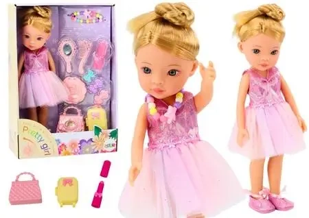 Lalka Baletnica Różowa Balerina Akcesoria Dodatki Sukienka Zestaw Ta urocza lalka baletnica to idealny prezent dla małych miłośniczek baletu i tańca. Lalka zachwyca swoim wyglądem oraz dodatkami, które umożliwiają różnorodną i kreatywną zabawę. Lalka ubrana jest w elegancką, różową sukienkę baletową, która lśni i przyciąga wzrok. Nosi klasyczne baletki, wiązane na nodze, co dodaje jej autentycznego wyglądu prawdziwej baletnicy. Lalka ma długie, blond włosy, uczesane w wysoki kok, co podkreśla jej baletowy styl. Ma delikatny makijaż oraz kolorowy naszyjnik, które dodają jej uroku i elegancji. Stylowa torebka, idealna na drobne akcesoria lalki. Funkcjonalna walizka, którą lalka może zabrać na swoje baletowe podróże. Spinki, które mogą być używane do stylizowania włosów lalki. Mały pierścionek, który dodaje lalce elegancji. Lusterko, szczotkę i lustro poręczne, które pozwala lalce sprawdzać swój wygląd przed baletowymi występami. Lalka baletnica z akcesoriami to świetna zabawka, która nie tylko rozwija wyobraźnię, ale także pozwala dzieciom na odgrywanie różnych scenek i tworzenie własnych historii baletowych. Dzięki różnorodnym akcesoriom, zabawa staje się jeszcze bardziej fascynująca i wszechstronna. Zawartość zestawu: - lalka - walizka - torba - dwie spinki - pierścionek - szminka - dwa lustra - grzebień - oryginalne opakowanie Wymiary lalki: 34 cm x 11 cm x 7 cm Posiada certyfikat CE, ponadto jest zgodny z normą EN71. Przeznaczony dla dzieci powyżej 3 roku życia.