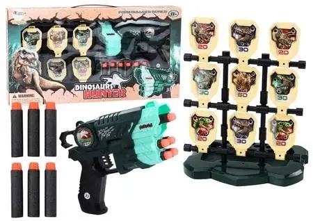 Zestaw Pistolet Z Tarczą Strzałki Piankowe Dinozaury Zielony Zestaw do strzelania z motywem dinozaurów to doskonała propozycja dla młodych miłośników przygód i prehistorycznych stworzeń. W skład zestawu wchodzi mały, zręczny pistolet na strzałki piankowe, który dzięki swojemu ergonomicznemu kształtowi doskonale leży w dłoni dziecka. Pistolet wyposażony jest w magazynek, co sprawia, że strzałki są zawsze pod ręką, a zabawa staje się bardziej dynamiczna i płynna. Do zestawu dołączona jest tarcza z punktami, która pozwala na liczenie zdobytych punktów i rywalizację z innymi. Tarcza przedstawia różne strefy punktowe, co umożliwia rozwijanie umiejętności celności i precyzji. Dzięki temu dzieci mogą bawić się zarówno samodzielnie, jak i w grupie, organizując zawody strzeleckie. Zestaw zawiera również 6 piankowych strzałek, które są bezpieczne i miękkie, co gwarantuje bezpieczną zabawę bez ryzyka kontuzji. Strzałki te są lekkie i łatwe do załadowania do magazynka, co dodatkowo ułatwia korzystanie z pistoletu nawet najmłodszym. Zestaw do strzelania z motywem dinozaurów to idealny wybór dla dzieci, które uwielbiają aktywną zabawę i fascynują się dinozaurami. Dzięki pistoletowi z magazynkiem, tarczy z punktami i piankowym strzałkom, zabawa staje się ekscytująca, bezpieczna i pełna wyzwań. Wymiary pistoletu: 18cm x 14,5cm x 5,5cm Wymiary tarczy: 26cm x 21cm x 15,5cm Wymiary opakowania: 44,5cm x 23,5cm x 6cm Posiada certyfikat CE, ponadto jest zgodny z normą EN71. Przeznaczony dla dzieci powyżej 6 roku życia.