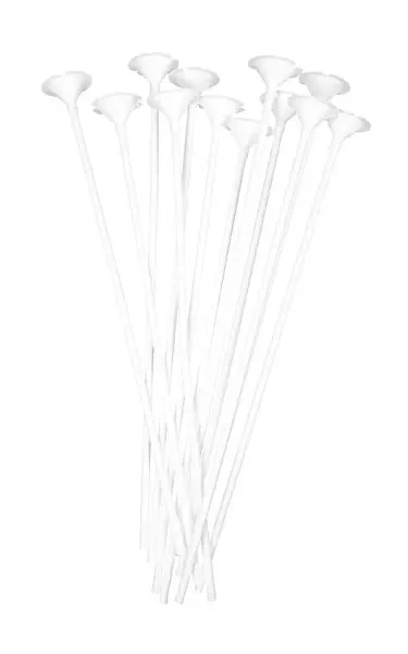 Ekologiczne, papierowe patyczki do balonów w kolorze białym. Do patyczków dołączone są koszyczki umożliwiające zamocowanie balonów. Opakowanie zawiera 18 patyczków o długości 35 cm oraz 18 koszyczków do mocowania balonów. Podane wymiary są wymiarami w opakowaniu.