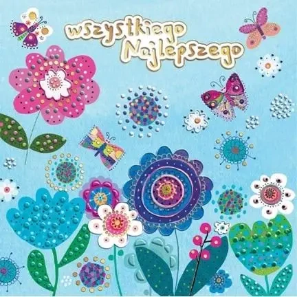 Karnet w formacie 15 x 15 cm. Wydrukowany na wysokiej jakości papierze. Karnet z tłoczonymi wzorami na całej powierzchni oraz złoceniem. W zestawie kolorowa koperta.
