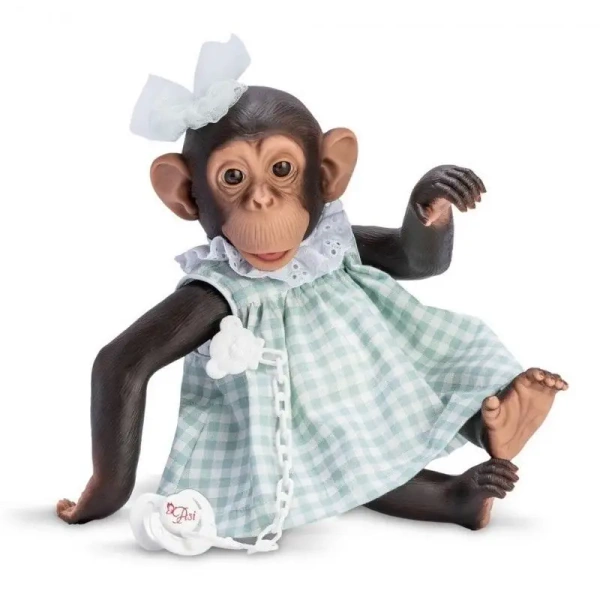 Zwracająca uwagę realistycznym wyglądem, dopracowana w najdrobniejszych detalach małpka renomowanej hiszpańskiej marki Asi wykonana została z miękkiego, przyjemnego w dotyku winylu. Zwracają uwagę brązowe oczy o głębokim spojrzeniu. Kończyny można ułożyć dowolnie. Głowa jest również ruchoma, dzięki czemu szympans może przyjmować różne pozycje.