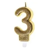 Świeczka urodzinowa 3 złoty brokat - GoParty