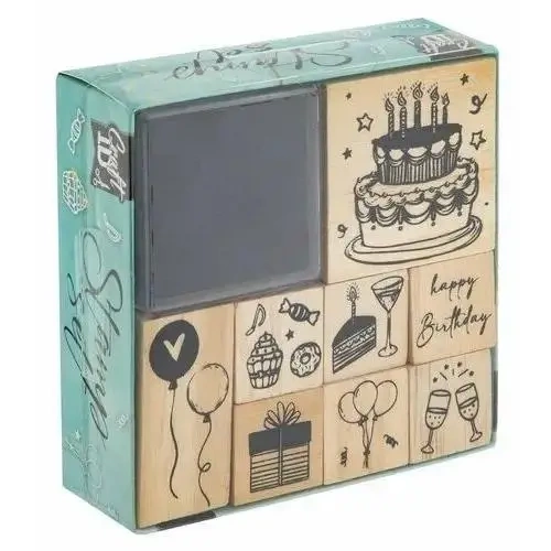 Pieczątki drewniane 8szt z kałamarzem - Grafix