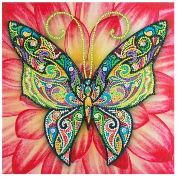 Diamond painting (haft diamentowy / mozaika diamentowa), to po prostu przyklejanie diamencików jednego po drugim za pomocą pisaka do pasujących numerów na szablonie motywu. Gotowy obrazek ma wymiary 30 30 cm i jest zadrukowany pięknym motylim wzorem. Po ukończeniu prac obraz można oprawić w ramkę i powiesić na ścianie.