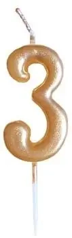 Świeczka urodzinowa metaliczna złota SH-719-3 Cyferka "3"