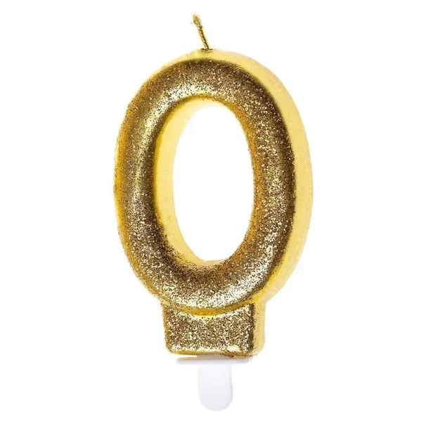 Świeczka urodzinowa 0 złoty brokat - GoParty