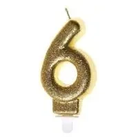 Świeczka urodzinowa 6 złoty brokat - GoParty