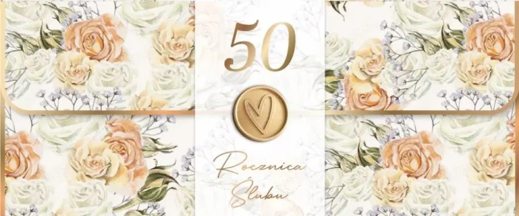 EKSKLUZYWNY KARNET 50 ROCZNICY ŚLUBU ZE ZŁOCENIEM LUB SREBRZENIEM, WYKONANY NA PERŁOWYM PAPIERZE Z DUŻĄ ILOŚCIĄ DODATKÓW