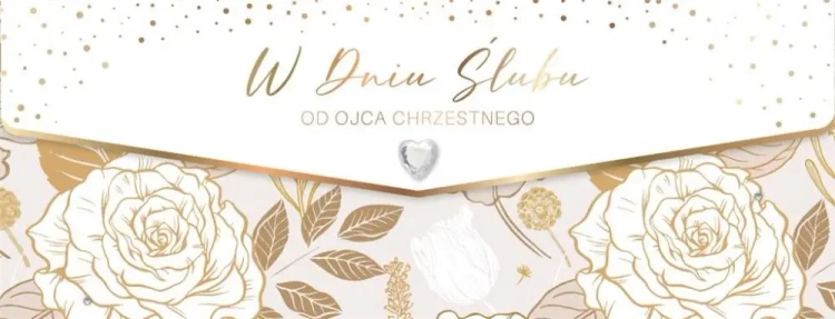 Karnet Dedykowany od Ojca Chrzestnego. Luksusowy karnet Ślubny z elementami złocenia lub srebrzenia, wykonany na specjalnym, grubym kartonie z licznymi dodatkami.