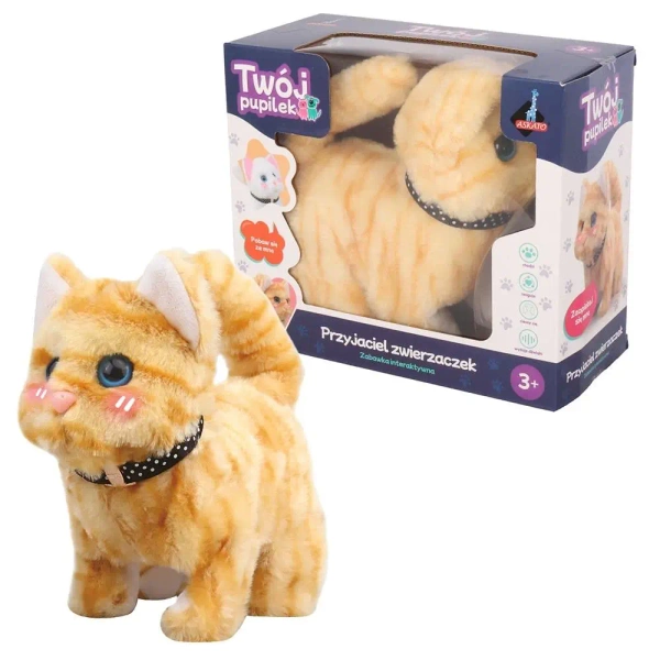 Twój Pupilek kotek. Chodzi, miauczy, rusza pyszczkiem. zasilanie: 2xAA (brak w zestawie) Wymiary opakowania:26.5x4x19 cm wiek: 3+