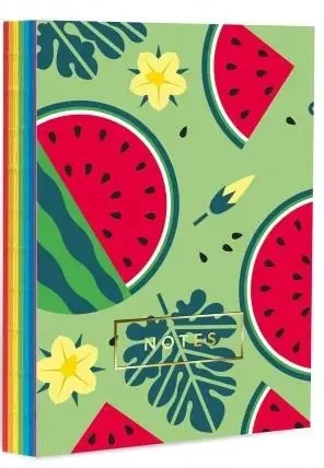 Odkryj wyjątkowy notes z letnim, owocowym wzorem, zdobiącym brzegi oraz okładkę. Kolorowy, odkryty grzbiet dodaje mu niepowtarzalnego charakteru, co z pewnością przyciągnie wzrok.