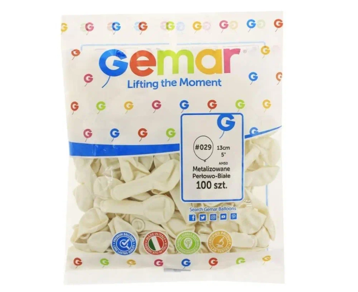 Balony AM50 metal perłowo-białe 29 100szt - Godan