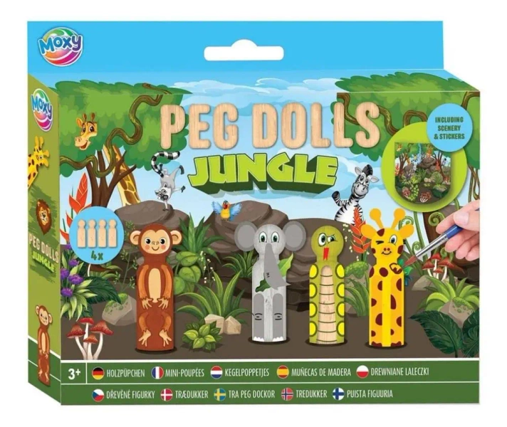 Zestaw drewnianych laleczek do malowania Dżungla - Grafix